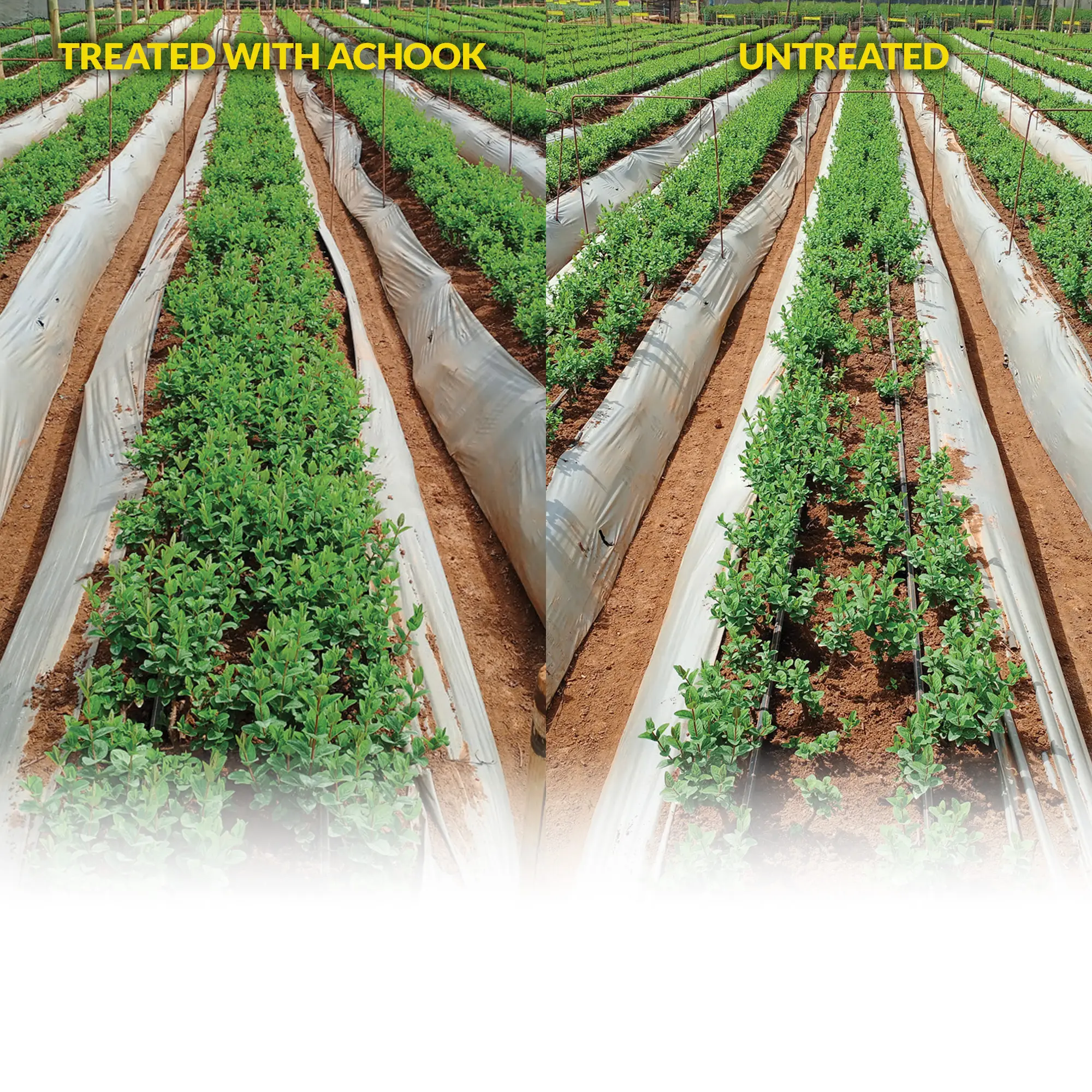 Achook is a powerful, reliable, effective bio-pesticide, nematicide and insecticide. It has been proven to be a solution for issues on most crops and the list keeps growing.